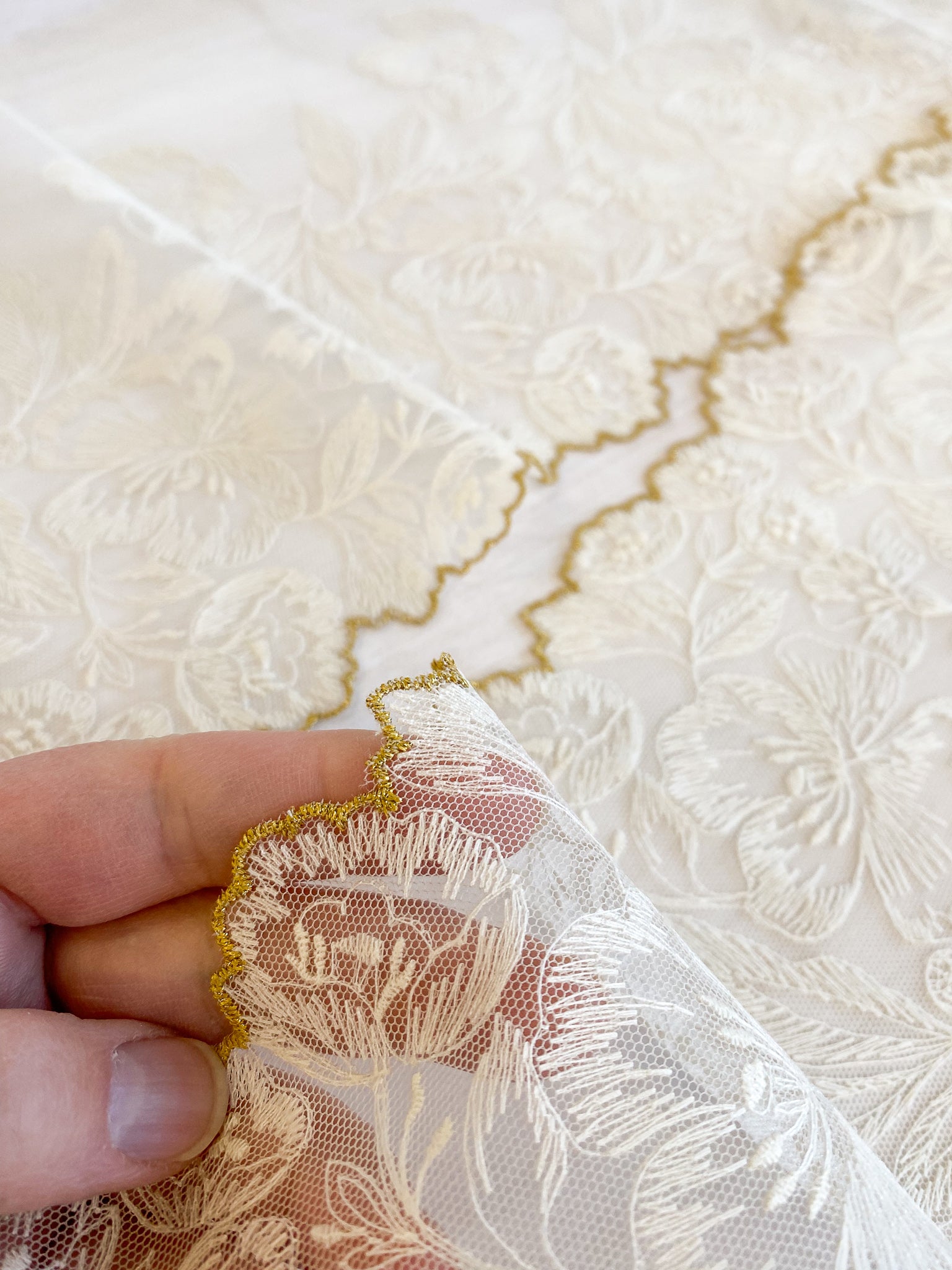 Guinevere is named for the queen in the King Arthur legends, she is a strong character and this lace gives her Queen vibes. It has a beautiful floral design with a stunning gold edge.
