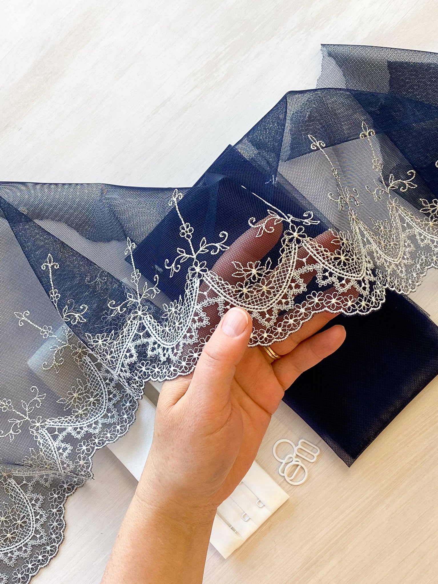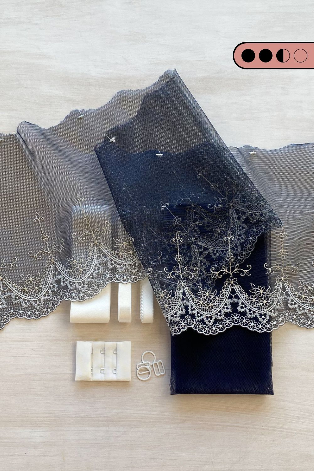 • 0.5m x 0.37m (20” x 14”) Bra Tulle (for lining the cups) - Midnight Bue