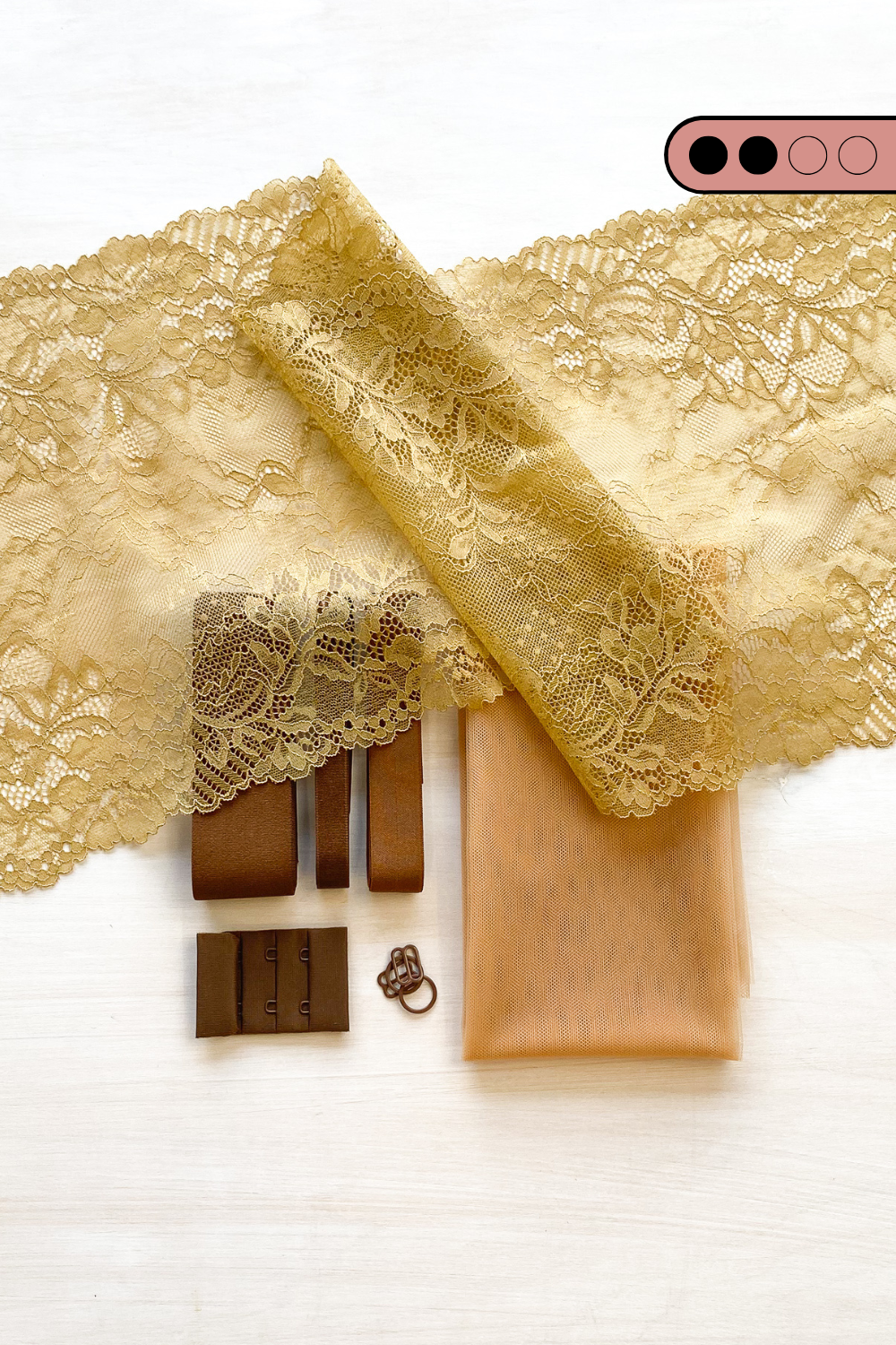 • 0.5m x 0.75m (20” x 29”) Bra Tulle (for the cups) - Caramel