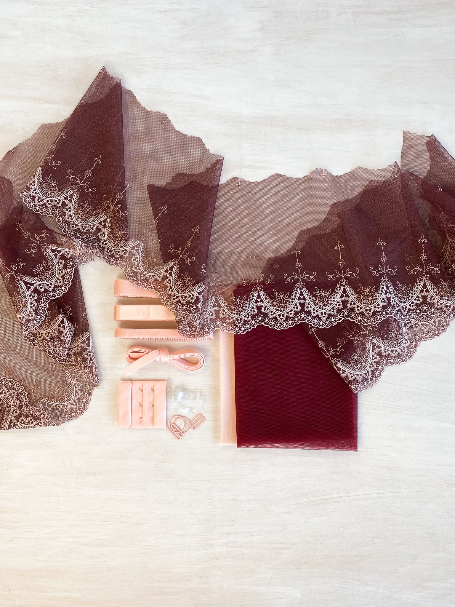 • 0.5m x .75m (20" x 29") Bra Tulle (for lining the lace) - Garnet