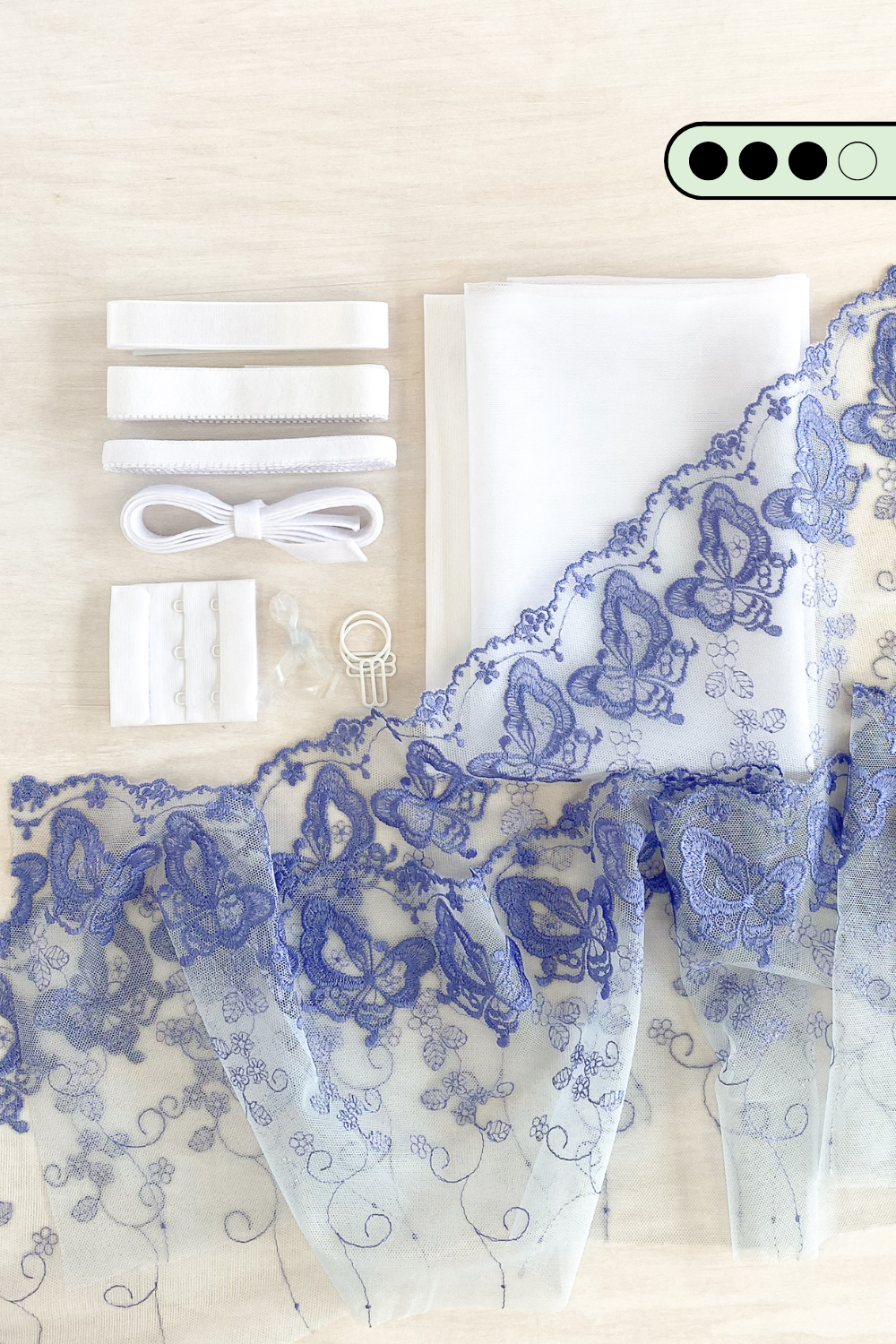 • 1.2m x 2 mirrored pieces Butterfly Kisses Embroidered Tulle Lace (for the cups & cradle)