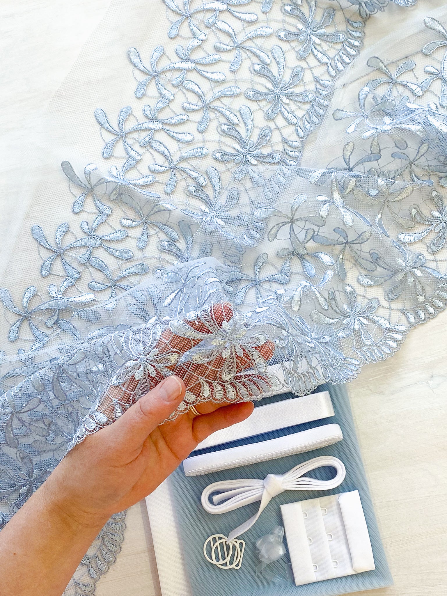 • 0.5m x .75m (20" x 29") Bra Tulle (for lining the lace) - Powder Blue