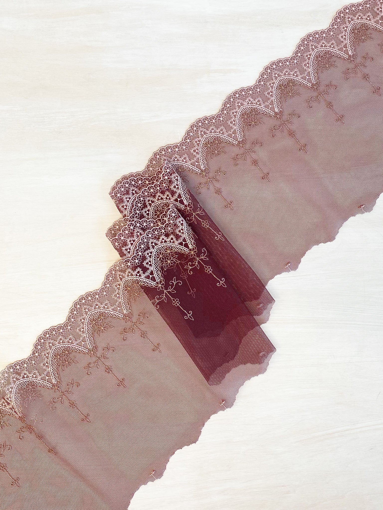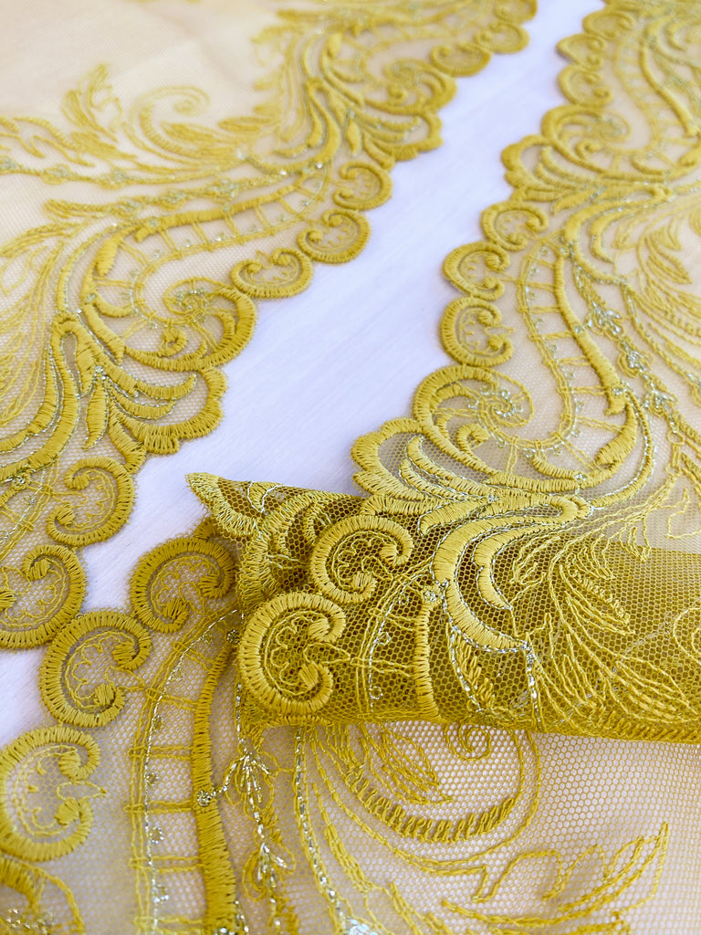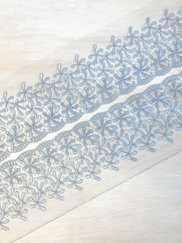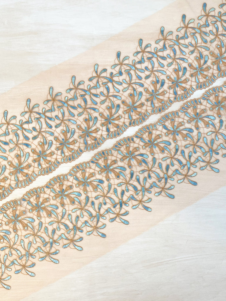 Avalon was named for the magical land from the King Arthur. This lace reminds me of medieval castles and stained glass windows. It has a beautiful metallic thread running through the embroidered flowers which add to the magic.