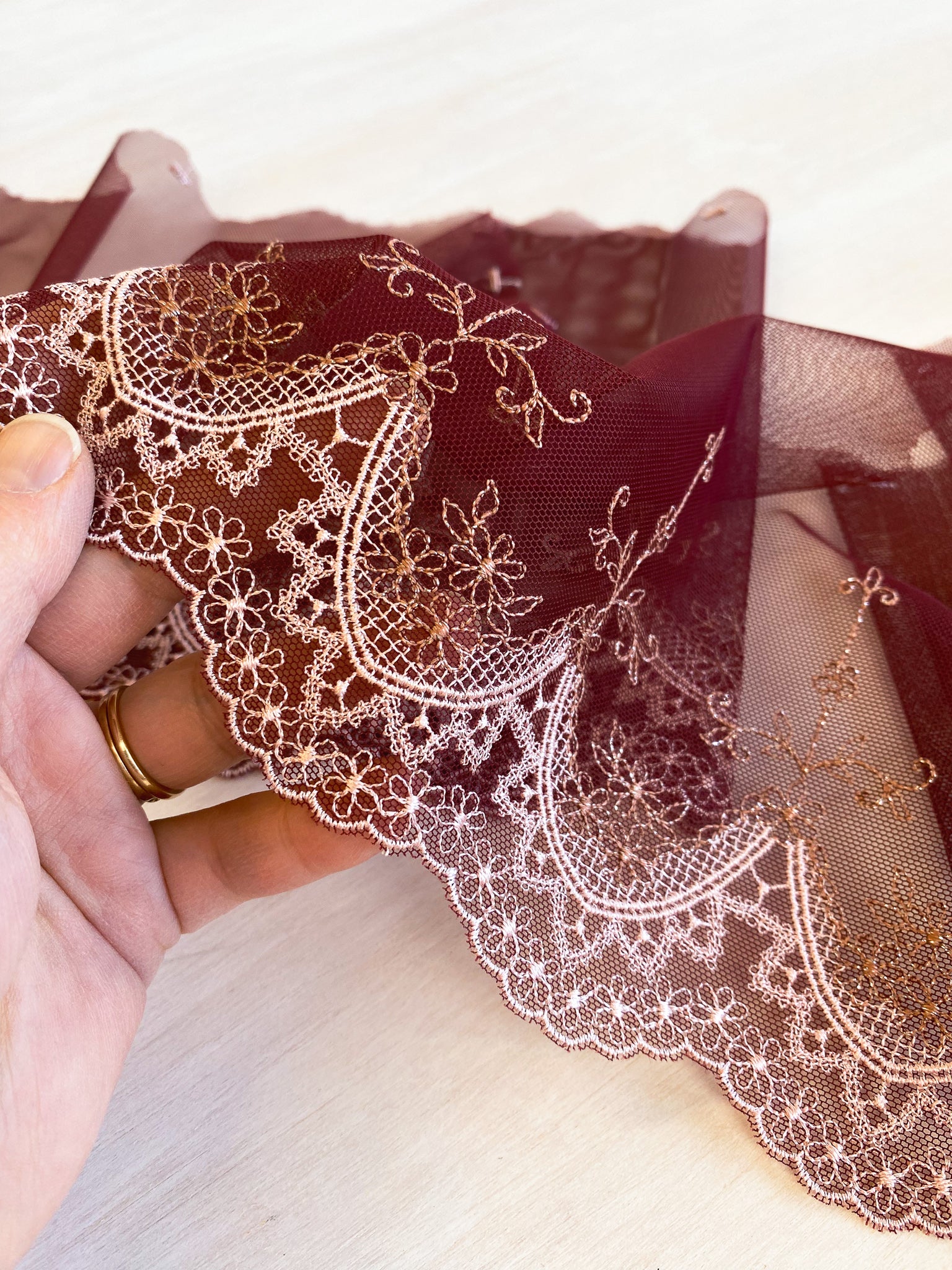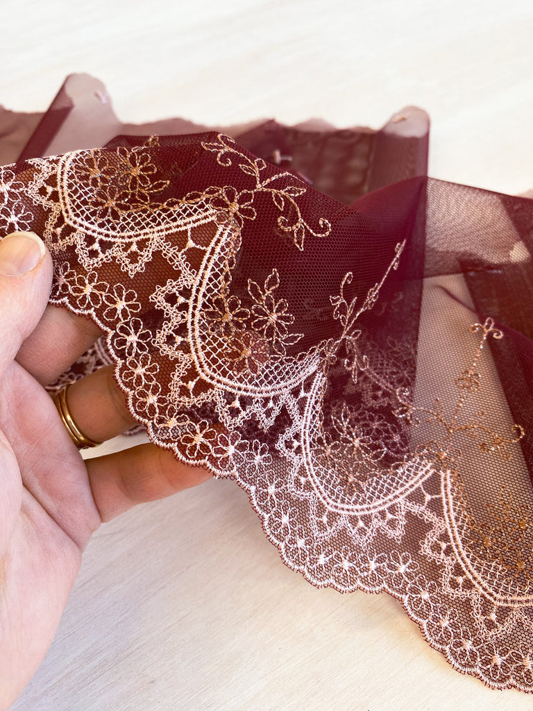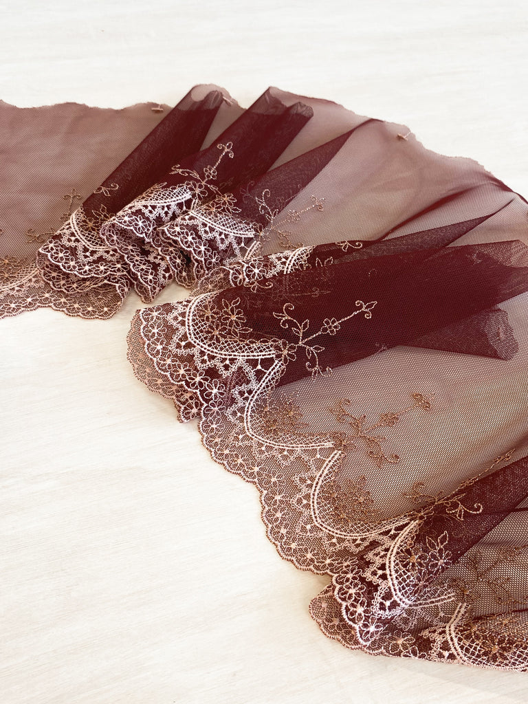 Avalon was named for the magical land from the King Arthur. This lace reminds me of medieval castles and stained glass windows. It has a beautiful metallic thread running through the embroidered flowers which add to the magic.