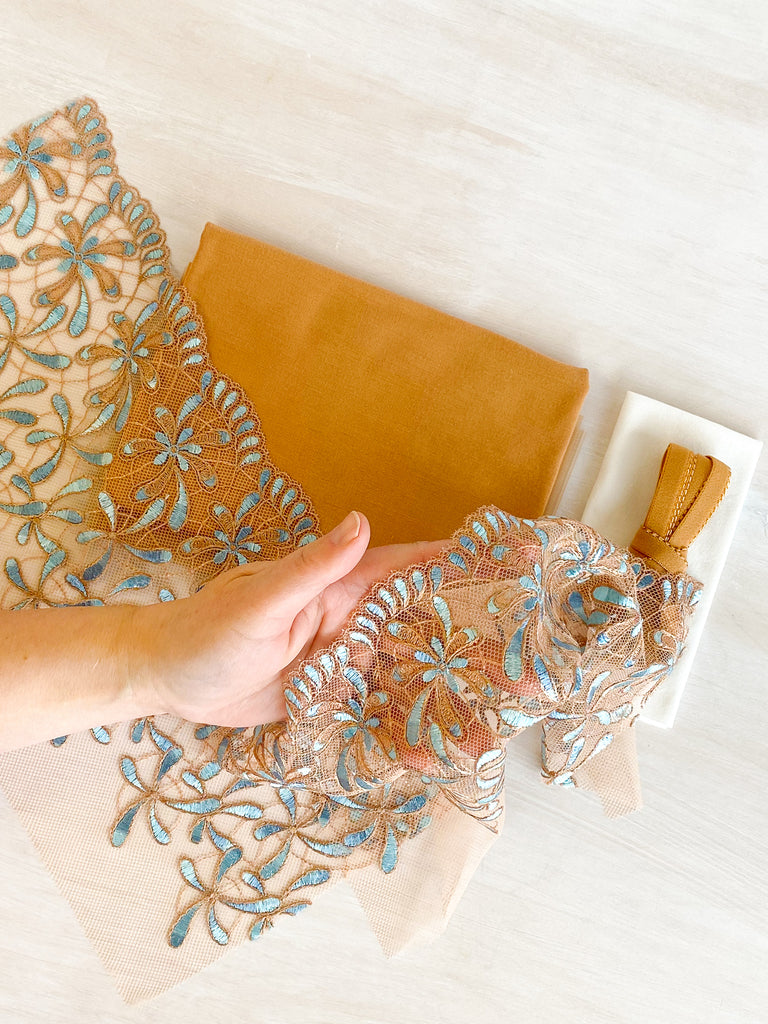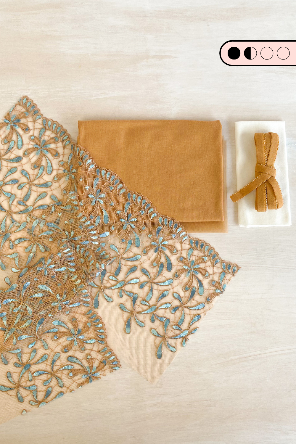 | Bra Tulle (for lining the lace) - Caramel | 0.5m X 0.37m (20” X 14”) | 0.3m X 0.74m (12” X 28”) |