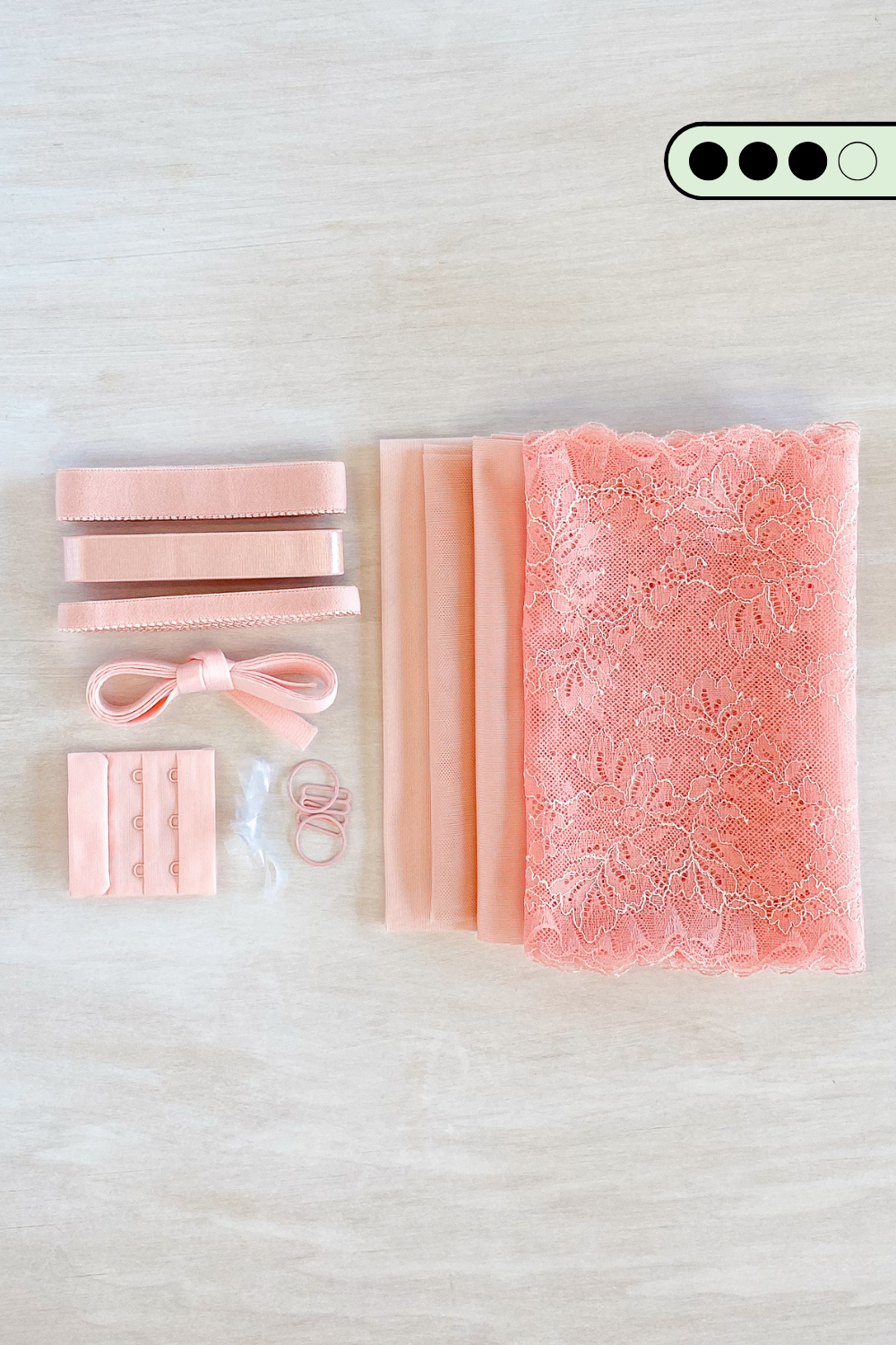 This kit is for the Black Beauty Bra pattern, View B made with duoplex and lace upper cup.